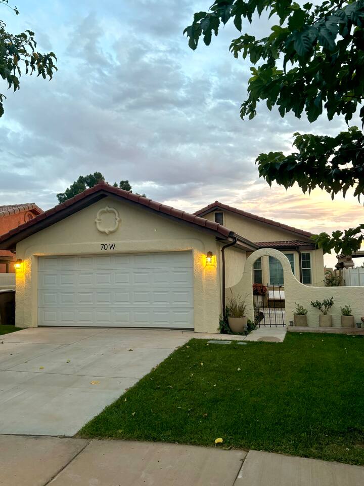 Welcome to this charming, stylish home in the heart of Kanab, Utah! This cozy retreat features epic shots of Southern Utah's stunning landscapes, making it a perfect getaway. With 3 deluxe bedrooms and 2 bathrooms, it comfortably sleeps 6. Enjoy a relaxing evening in the private spa or gather around the propane firepit for a cozy night under the stars. Centrally located, the home is just a short drive from Zion National Park and other incredible attractions. Come experience the best of Kanab!
