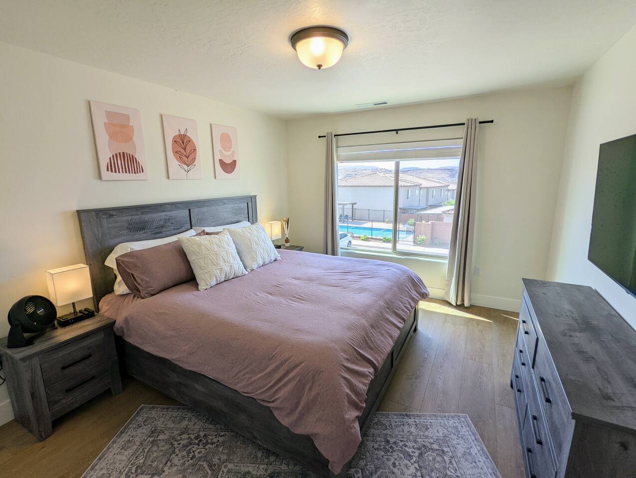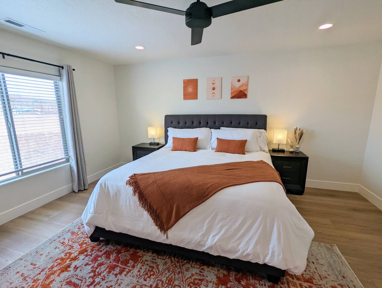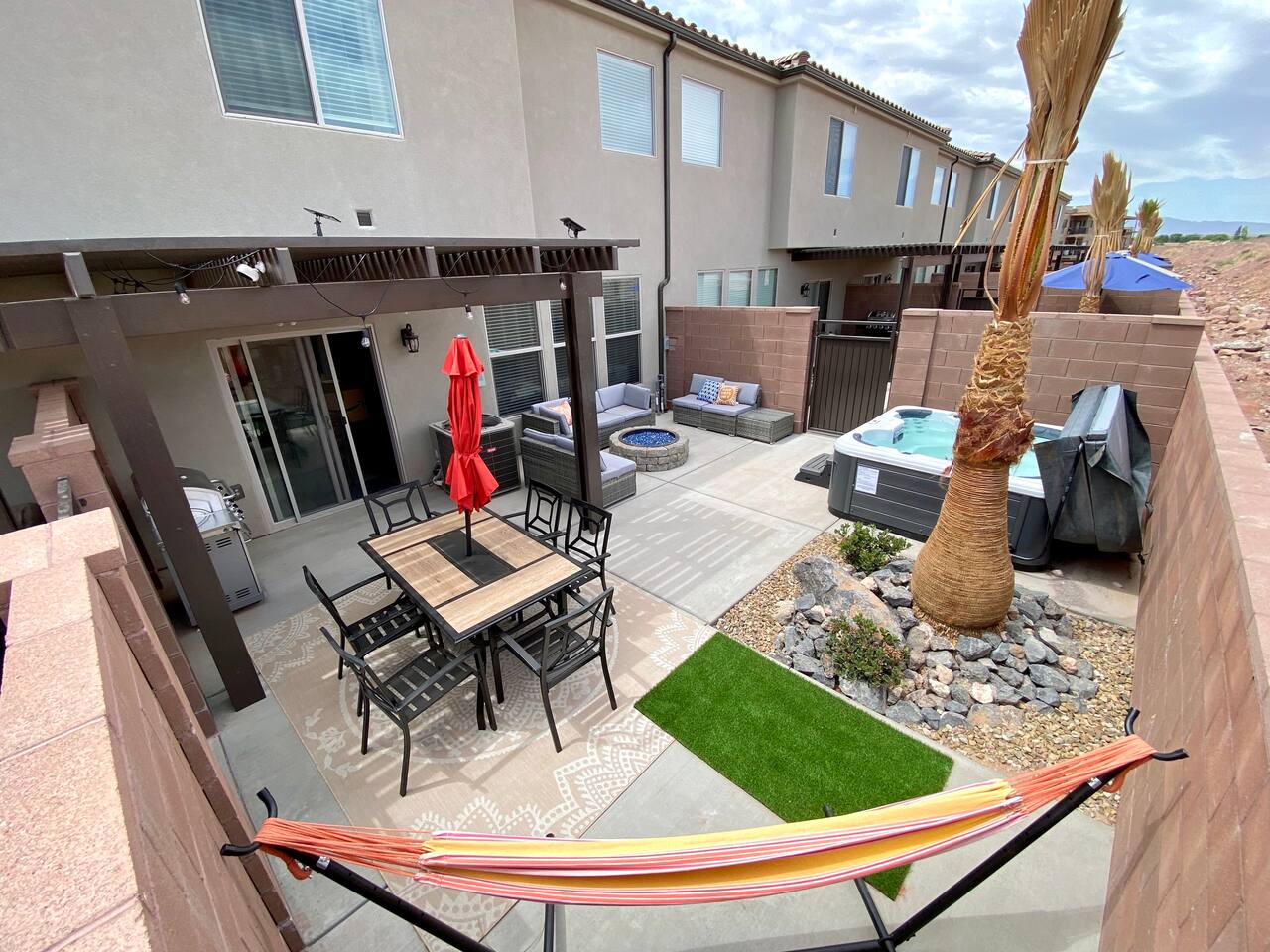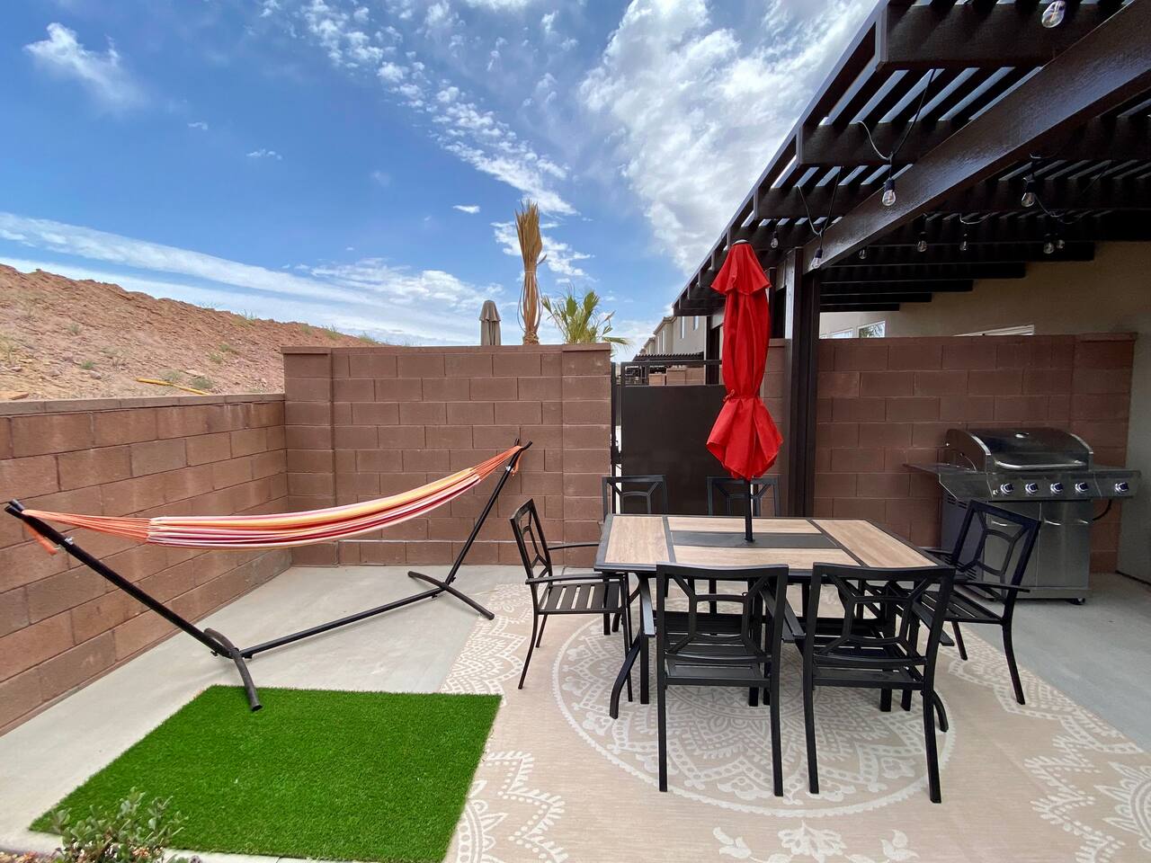 This newly completed luxury vacation home is located two minutes off of I-15, seven minutes from the heart of St. George, and is exactly where you'll want to be to experience all the beauty of Southern Utah. The community pool is located right across the street. Grocery stores, great restaurants, and shopping centers are all located within a few minutes drive. Zion National Park is only a 35 mile scenic drive away. It could be called a heaven on earth. A red-rock wonderland created by wind, water and snow. The Narrows and Angels Landing are extraordinary places to experience. The main hikes are epic, but the park is also full of off-the-beaten path adventures and hidden gems, perfect for seeking out during the crowded summer high season. The Virgin River bike trail is a paved river-side trail through Washington and St. George. The trail is family friendly and provides striking views of the Virgin River. You can ride directly from the property to the trail. The Hellhole trailhead is conveniently located only a half mile from our home. We definitely recommend a trip to Sand Hollow with its warm, blue waters and red sandstone landscape. Boat, fish, cliff jump and dive at the reservoir. Explore and ride the dunes of Sand Mountain on an OHV and lay out on the beach. Snow Canyon State Park features a canyon carved from the red and white Navajo sandstone of the Red Mountains, as well as the extinct Santa Clara Volcano, lava tubes, lava flows, and petrified sand dunes. We absolutely love this park, the scenery is so beautiful. We highly recommend doing the Lava Flow trail. This 1.7-mile round trip path is considered relatively easy, so the whole family can enjoy this excursion. You don't want to miss out on this place! After adventuring through the wonderland of Southern Utah come home and treat yourself with all the luxuries provided for your enjoyment. Relax and unwind in the hot tub, watch a movie with the family, or kick back in the hammock for a well deserved nap.
