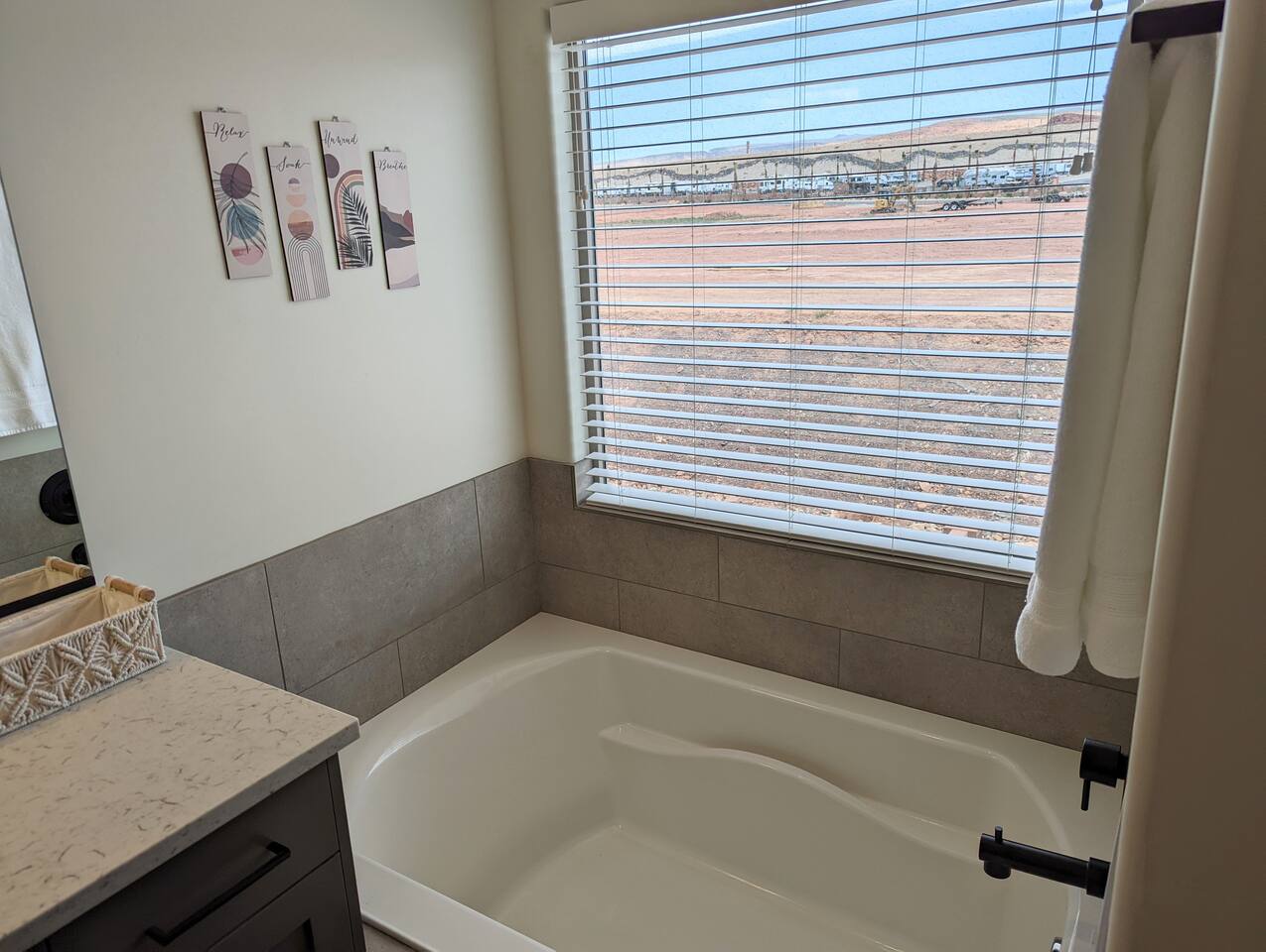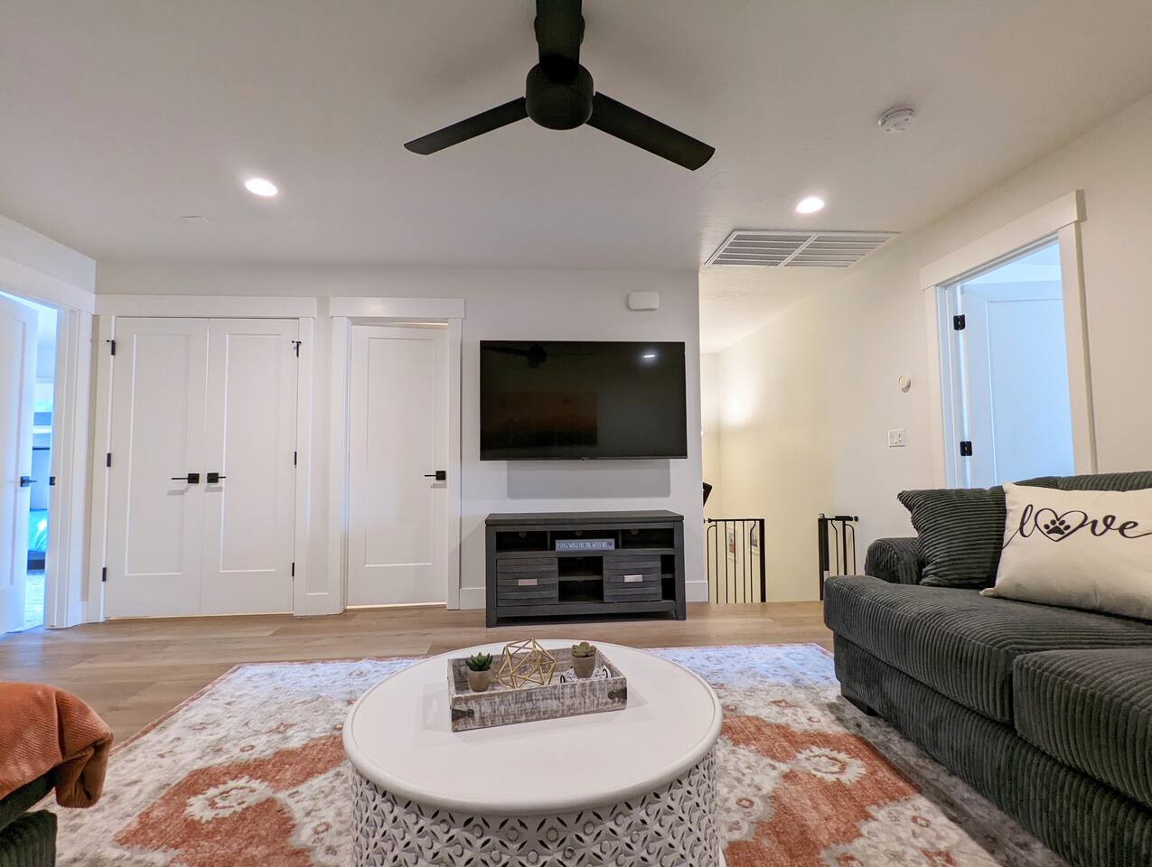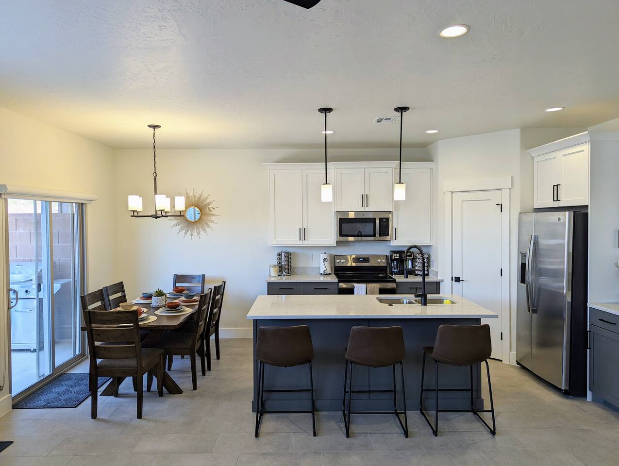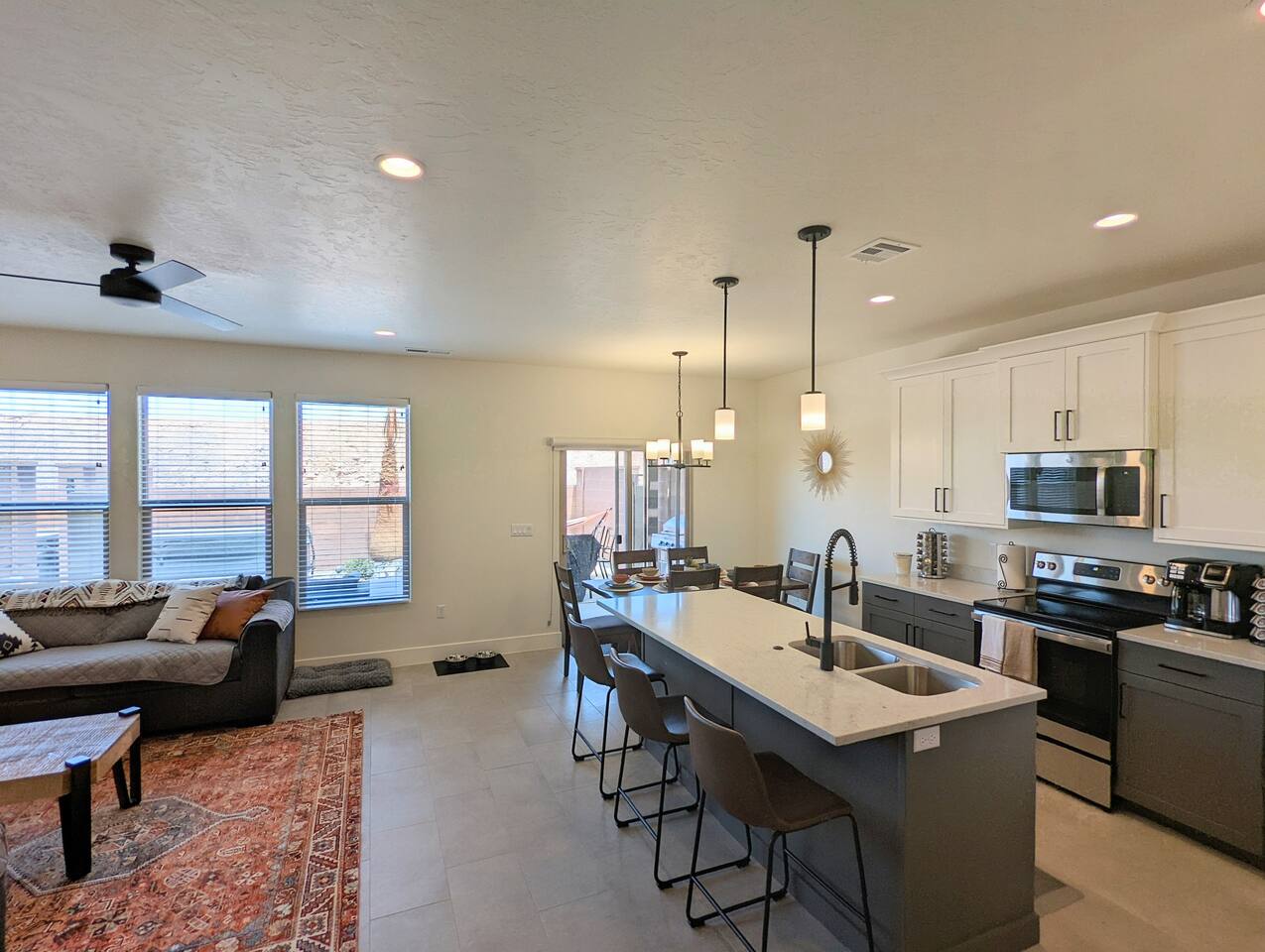 This newly completed luxury vacation home is located two minutes off of I-15, seven minutes from the heart of St. George, and is exactly where you'll want to be to experience all the beauty of Southern Utah. The community pool is located right across the street. Grocery stores, great restaurants, and shopping centers are all located within a few minutes drive. Zion National Park is only a 35 mile scenic drive away. It could be called a heaven on earth. A red-rock wonderland created by wind, water and snow. The Narrows and Angels Landing are extraordinary places to experience. The main hikes are epic, but the park is also full of off-the-beaten path adventures and hidden gems, perfect for seeking out during the crowded summer high season. The Virgin River bike trail is a paved river-side trail through Washington and St. George. The trail is family friendly and provides striking views of the Virgin River. You can ride directly from the property to the trail. The Hellhole trailhead is conveniently located only a half mile from our home. We definitely recommend a trip to Sand Hollow with its warm, blue waters and red sandstone landscape. Boat, fish, cliff jump and dive at the reservoir. Explore and ride the dunes of Sand Mountain on an OHV and lay out on the beach. Snow Canyon State Park features a canyon carved from the red and white Navajo sandstone of the Red Mountains, as well as the extinct Santa Clara Volcano, lava tubes, lava flows, and petrified sand dunes. We absolutely love this park, the scenery is so beautiful. We highly recommend doing the Lava Flow trail. This 1.7-mile round trip path is considered relatively easy, so the whole family can enjoy this excursion. You don't want to miss out on this place! After adventuring through the wonderland of Southern Utah come home and treat yourself with all the luxuries provided for your enjoyment. Relax and unwind in the hot tub, watch a movie with the family, or kick back in the hammock for a well deserved nap.
