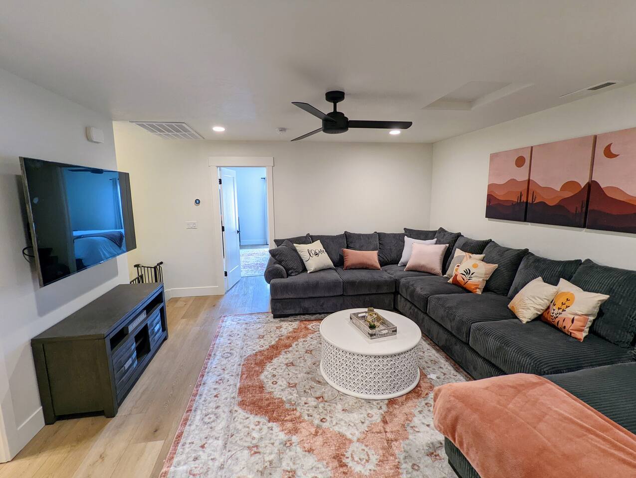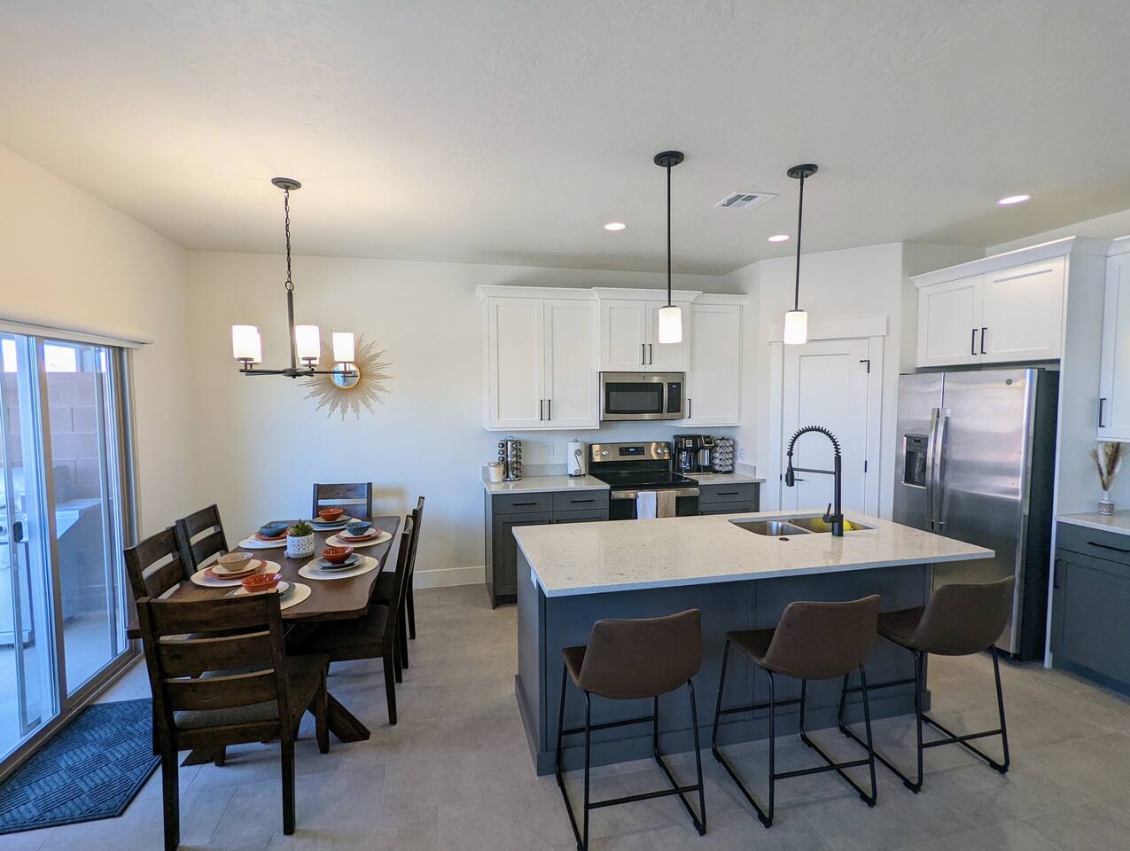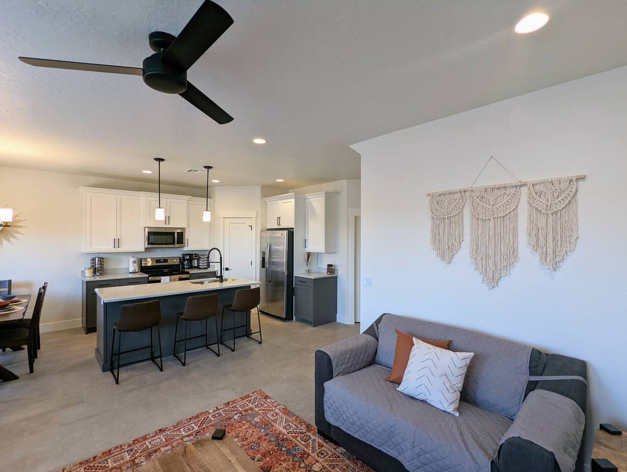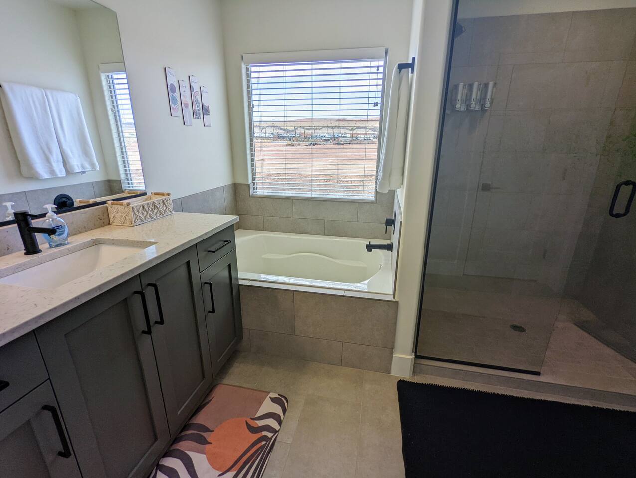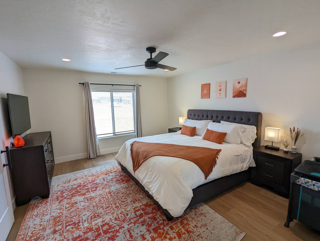 This newly completed luxury vacation home is located two minutes off of I-15, seven minutes from the heart of St. George, and is exactly where you'll want to be to experience all the beauty of Southern Utah. The community pool is located right across the street. Grocery stores, great restaurants, and shopping centers are all located within a few minutes drive. Zion National Park is only a 35 mile scenic drive away. It could be called a heaven on earth. A red-rock wonderland created by wind, water and snow. The Narrows and Angels Landing are extraordinary places to experience. The main hikes are epic, but the park is also full of off-the-beaten path adventures and hidden gems, perfect for seeking out during the crowded summer high season. The Virgin River bike trail is a paved river-side trail through Washington and St. George. The trail is family friendly and provides striking views of the Virgin River. You can ride directly from the property to the trail. The Hellhole trailhead is conveniently located only a half mile from our home. We definitely recommend a trip to Sand Hollow with its warm, blue waters and red sandstone landscape. Boat, fish, cliff jump and dive at the reservoir. Explore and ride the dunes of Sand Mountain on an OHV and lay out on the beach. Snow Canyon State Park features a canyon carved from the red and white Navajo sandstone of the Red Mountains, as well as the extinct Santa Clara Volcano, lava tubes, lava flows, and petrified sand dunes. We absolutely love this park, the scenery is so beautiful. We highly recommend doing the Lava Flow trail. This 1.7-mile round trip path is considered relatively easy, so the whole family can enjoy this excursion. You don't want to miss out on this place! After adventuring through the wonderland of Southern Utah come home and treat yourself with all the luxuries provided for your enjoyment. Relax and unwind in the hot tub, watch a movie with the family, or kick back in the hammock for a well deserved nap.