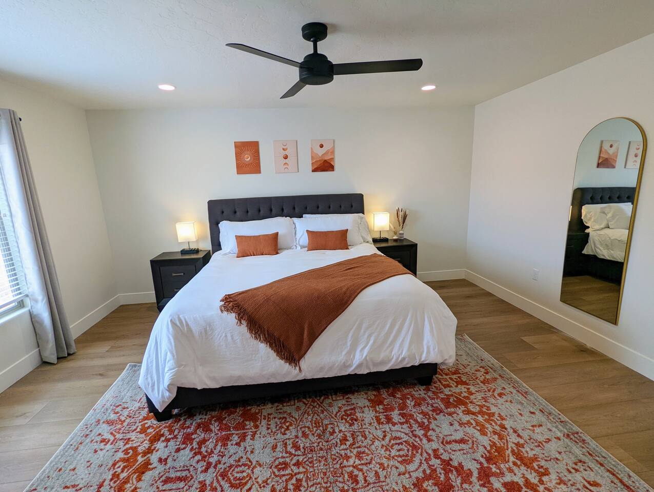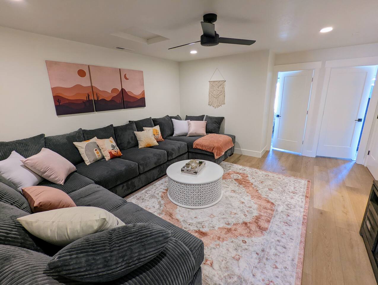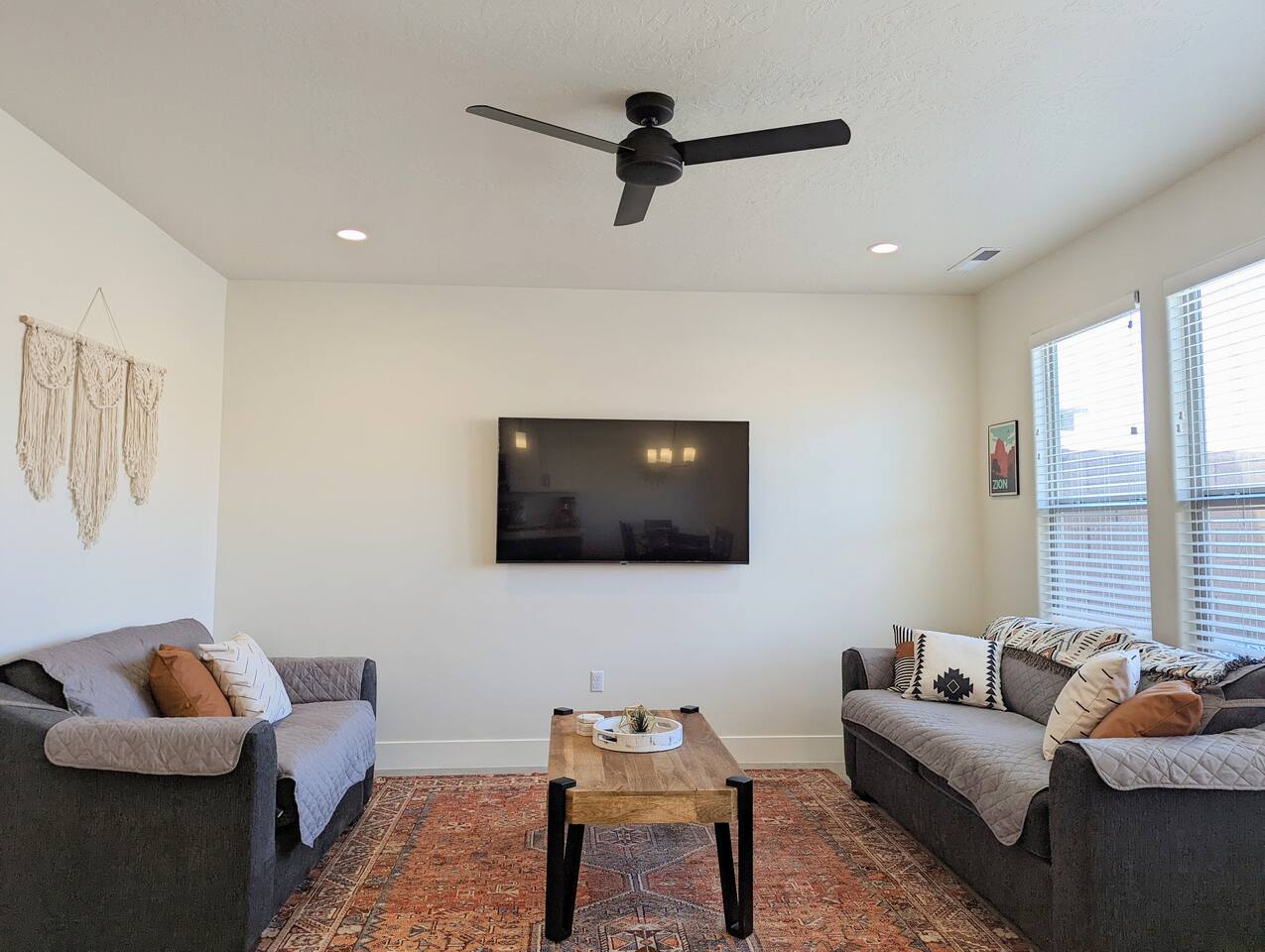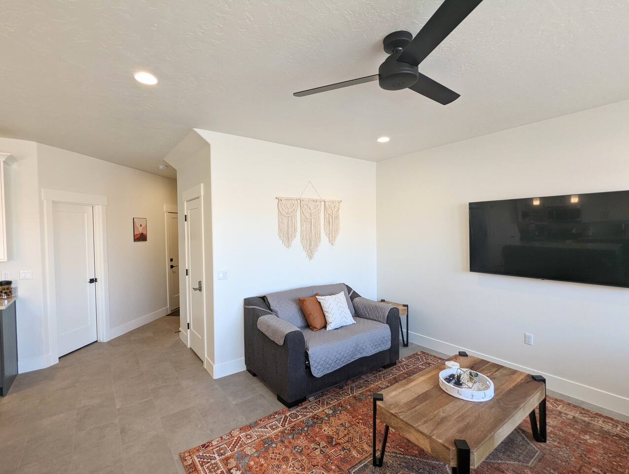 This newly completed luxury vacation home is located two minutes off of I-15, seven minutes from the heart of St. George, and is exactly where you'll want to be to experience all the beauty of Southern Utah. The community pool is located right across the street. Grocery stores, great restaurants, and shopping centers are all located within a few minutes drive. Zion National Park is only a 35 mile scenic drive away. It could be called a heaven on earth. A red-rock wonderland created by wind, water and snow. The Narrows and Angels Landing are extraordinary places to experience. The main hikes are epic, but the park is also full of off-the-beaten path adventures and hidden gems, perfect for seeking out during the crowded summer high season. The Virgin River bike trail is a paved river-side trail through Washington and St. George. The trail is family friendly and provides striking views of the Virgin River. You can ride directly from the property to the trail. The Hellhole trailhead is conveniently located only a half mile from our home. We definitely recommend a trip to Sand Hollow with its warm, blue waters and red sandstone landscape. Boat, fish, cliff jump and dive at the reservoir. Explore and ride the dunes of Sand Mountain on an OHV and lay out on the beach. Snow Canyon State Park features a canyon carved from the red and white Navajo sandstone of the Red Mountains, as well as the extinct Santa Clara Volcano, lava tubes, lava flows, and petrified sand dunes. We absolutely love this park, the scenery is so beautiful. We highly recommend doing the Lava Flow trail. This 1.7-mile round trip path is considered relatively easy, so the whole family can enjoy this excursion. You don't want to miss out on this place! After adventuring through the wonderland of Southern Utah come home and treat yourself with all the luxuries provided for your enjoyment. Relax and unwind in the hot tub, watch a movie with the family, or kick back in the hammock for a well deserved nap.