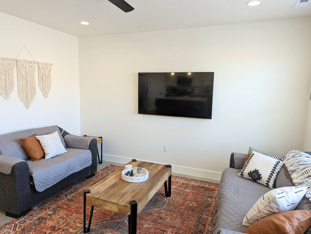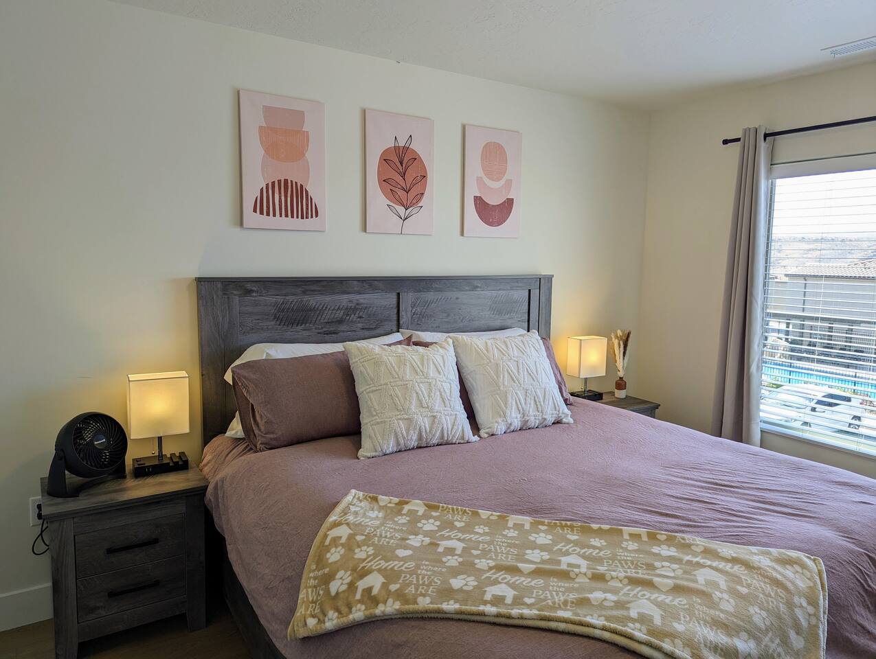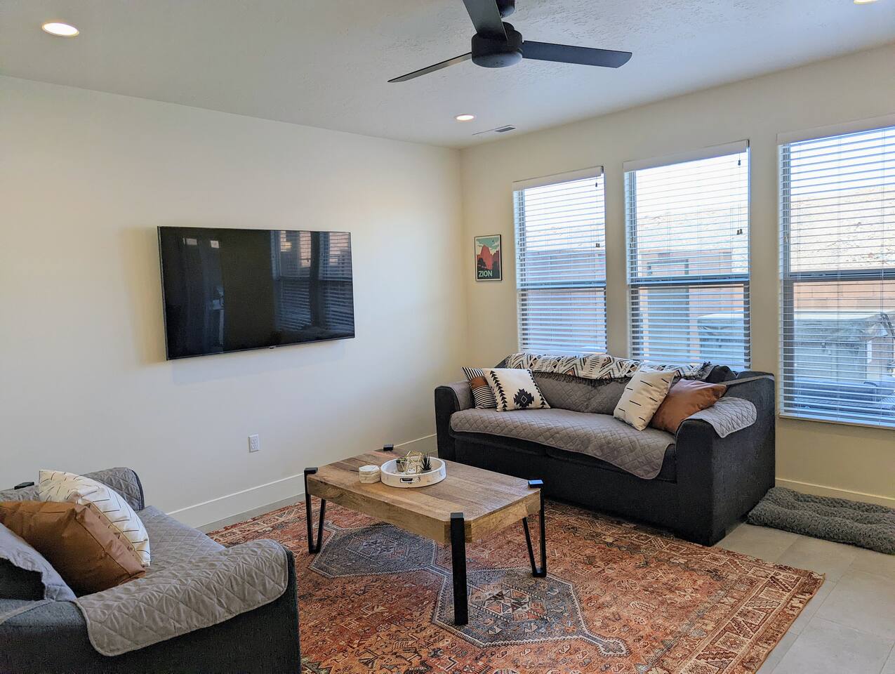 25% off if you book with us for 7 nights or more! Welcome to Dog Lovers at Vida Sol in St. George, Utah! This gorgeous 3bed, 3bath home provides everything you need for the perfect getaway. Equipped with a fully loaded kitchen, deluxe master suite, two large living rooms, four HD flat screen TVs, and a private patio. Enjoy the community pool, soaking in the private spa, chilling by the fire pit, having a barbecue, and relaxing in the hammock. Close to Zions NP and several state parks!