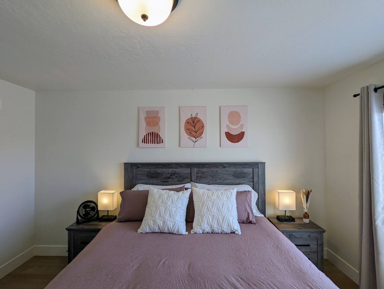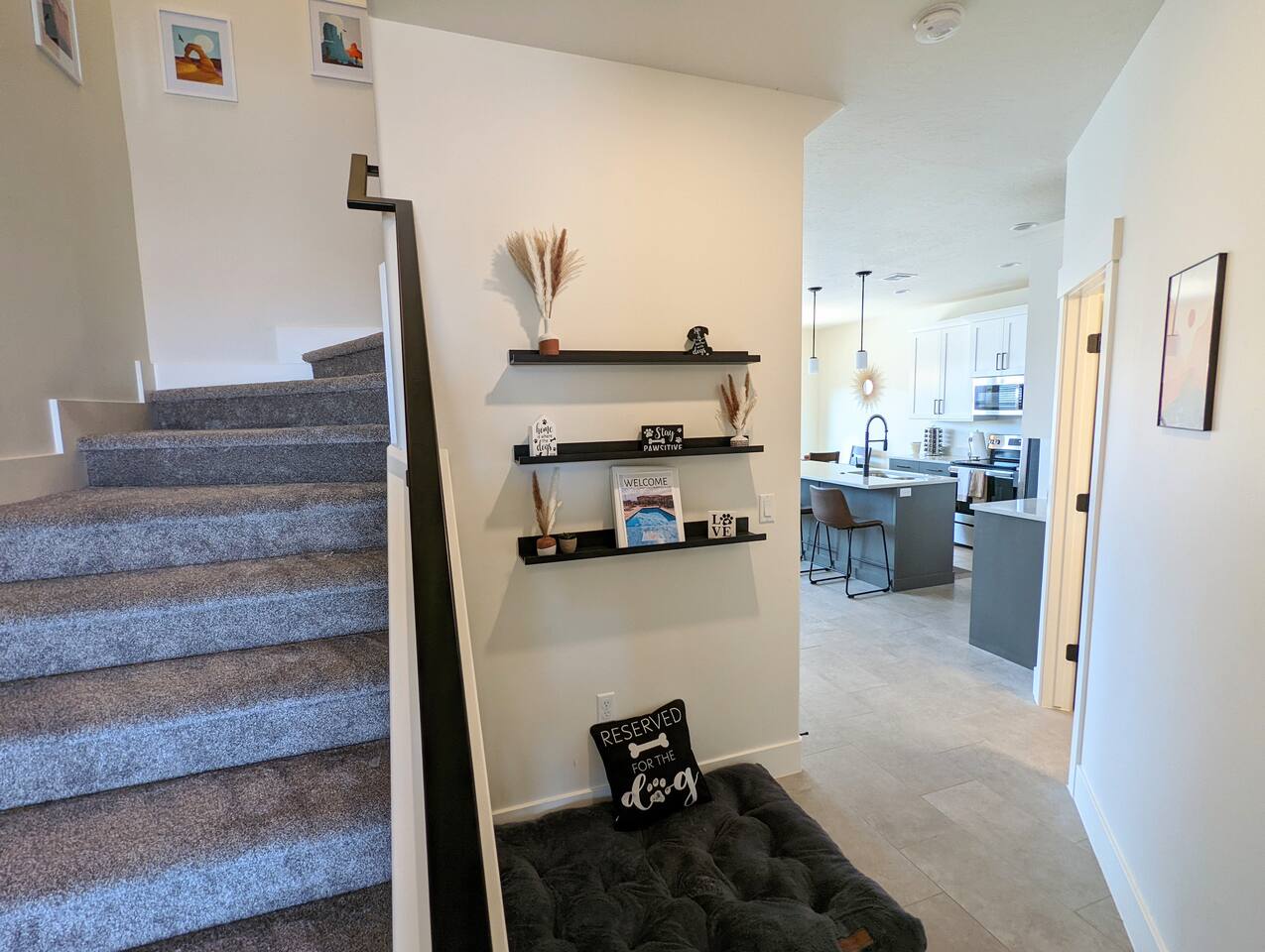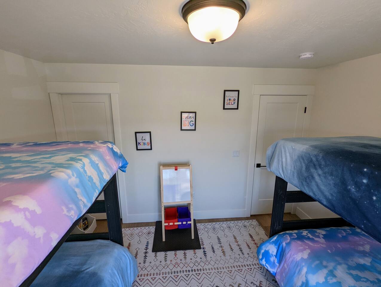 This home is professionally decorated with an eclectic boho theme. The first floor welcomes you with a combined kitchen, dining and living area. There is a full bath right off of the entry. The kitchen is fully equipped with all of the essentials plus a blender, crockpot, and waffle iron. All the spices you could ever need are located near your own personal coffee station. With a beautiful dining table that seats six, three bar stools at the island counter and a six person outdoor dining table you can host the entire family! Step out onto your private back patio with a hot tub, fire pit, dining table, sectional, hammock, lighted pergola, and BBQ grill. We also provide top of the line turf outback for your furry friends! Upstairs there are three bedrooms and two bathrooms surrounding another upscale living room. Enjoy the oversized sectional for movie nights. There is a deluxe king size master suite with its own private bathroom and large soaking tub. The second bedroom features a king size bed, cozy decor and room darkening shades. A thoughtfully decorated bunk room with all of the bonuses includes; lots of boardgames, stuffed animals, building blocks, an art easel, unique bedding and a constellation night light. Every bedroom has a large closet with built in storage. The laundry room is fully stocked and ready for use. Enjoy the comforts of extra cozy blankets and deluxe bath towels. This brand new 2022 townhome right across from the community pool has absolutely everything you need for the perfect getaway. Provided Toddler Friendly Amenities: Pack N Play with bassinet and changing table Bassinet sheets and baby blankets High Chair Safety locked kitchen cabinets Outlet Covers Kids dinnerware and cutlery Sippy Cups Gate at the top of stairs Stuffed Animals Classic family fun board games Only dogs allowed (reach out for exceptions) All types of dogs allowed/No weight or breed restrictions Max two dogs allowed on the property Dogs must be kept downstairs during your stay We charge a pet fee to ensure that our home is thoroughly cleaned between each guest and their furry friends Provided Dog Friendly Amenities: Dog treats Couch covers for dog hair Two dog feeding bowls A feeding mat Two dog beds of different sizes A turf for potty outside (It must be sprayed off at check-out) Poop bags Gate at the top of stairs