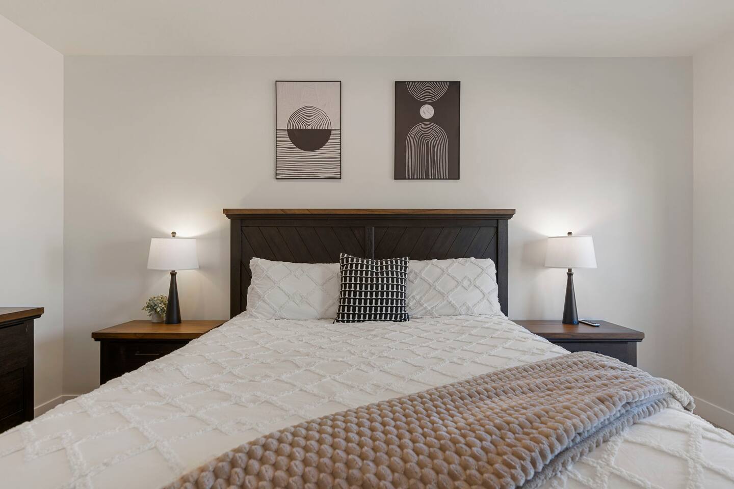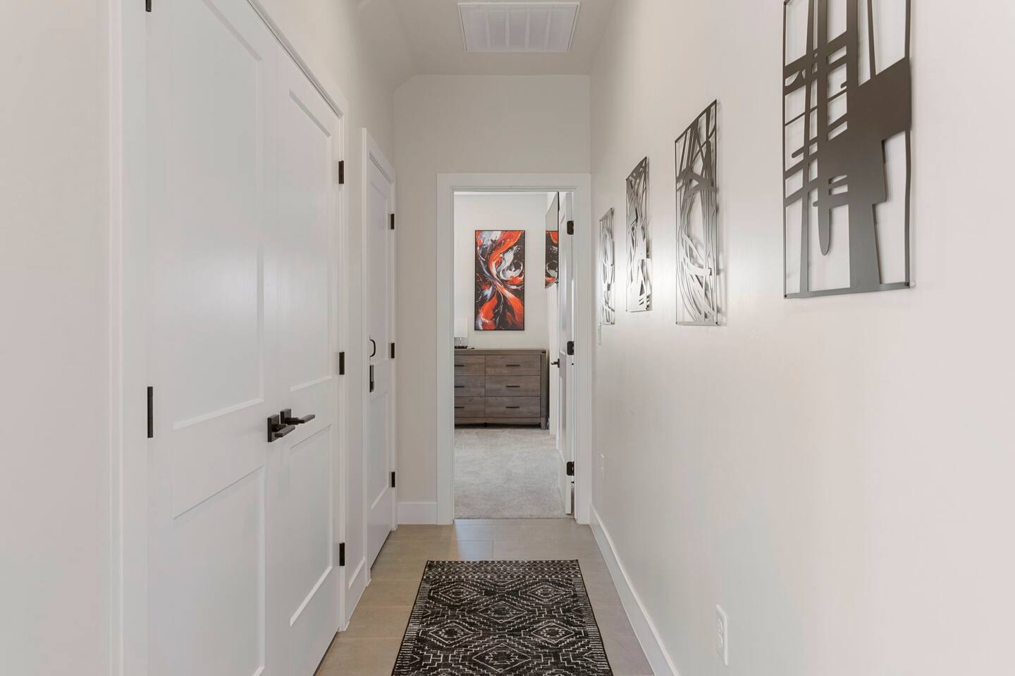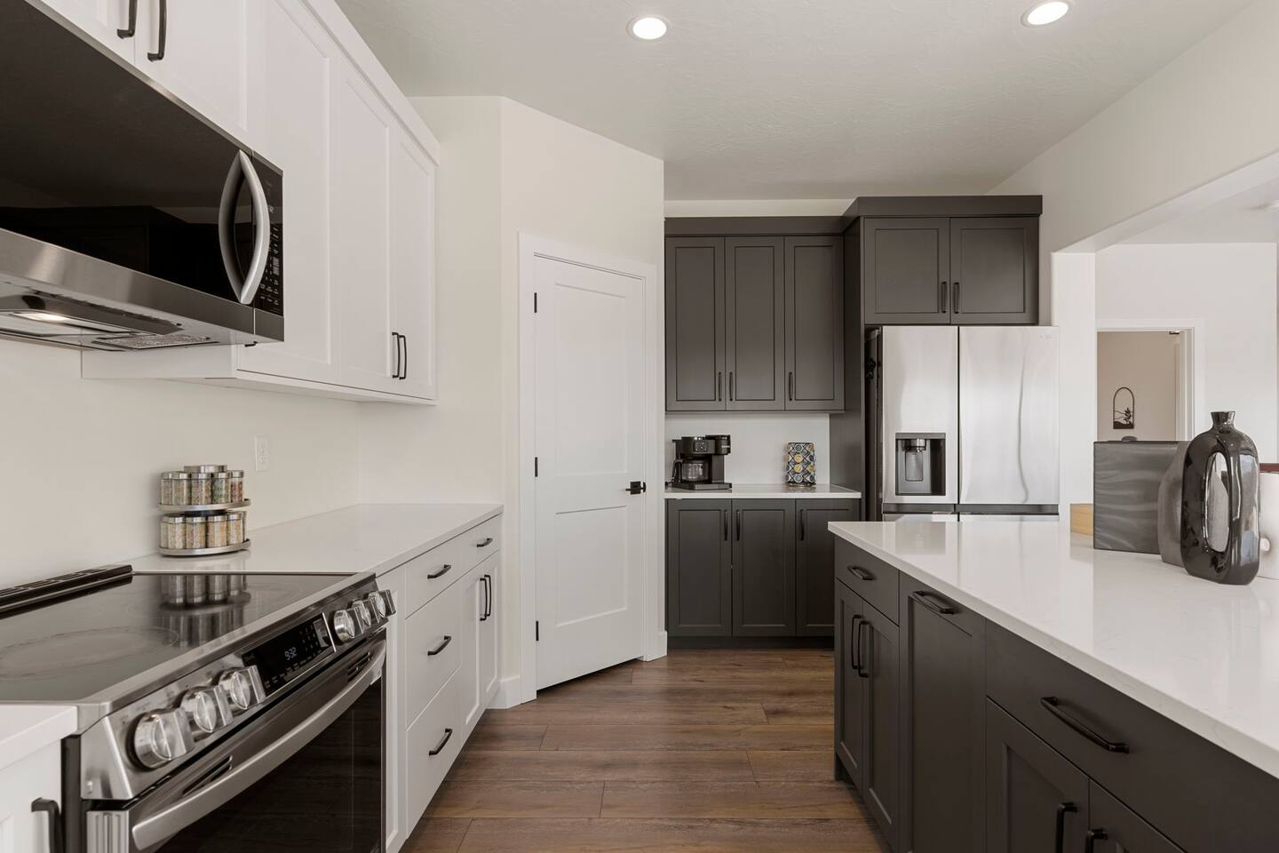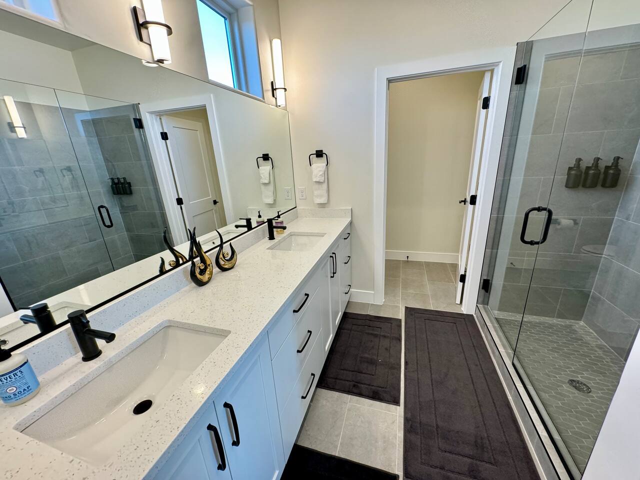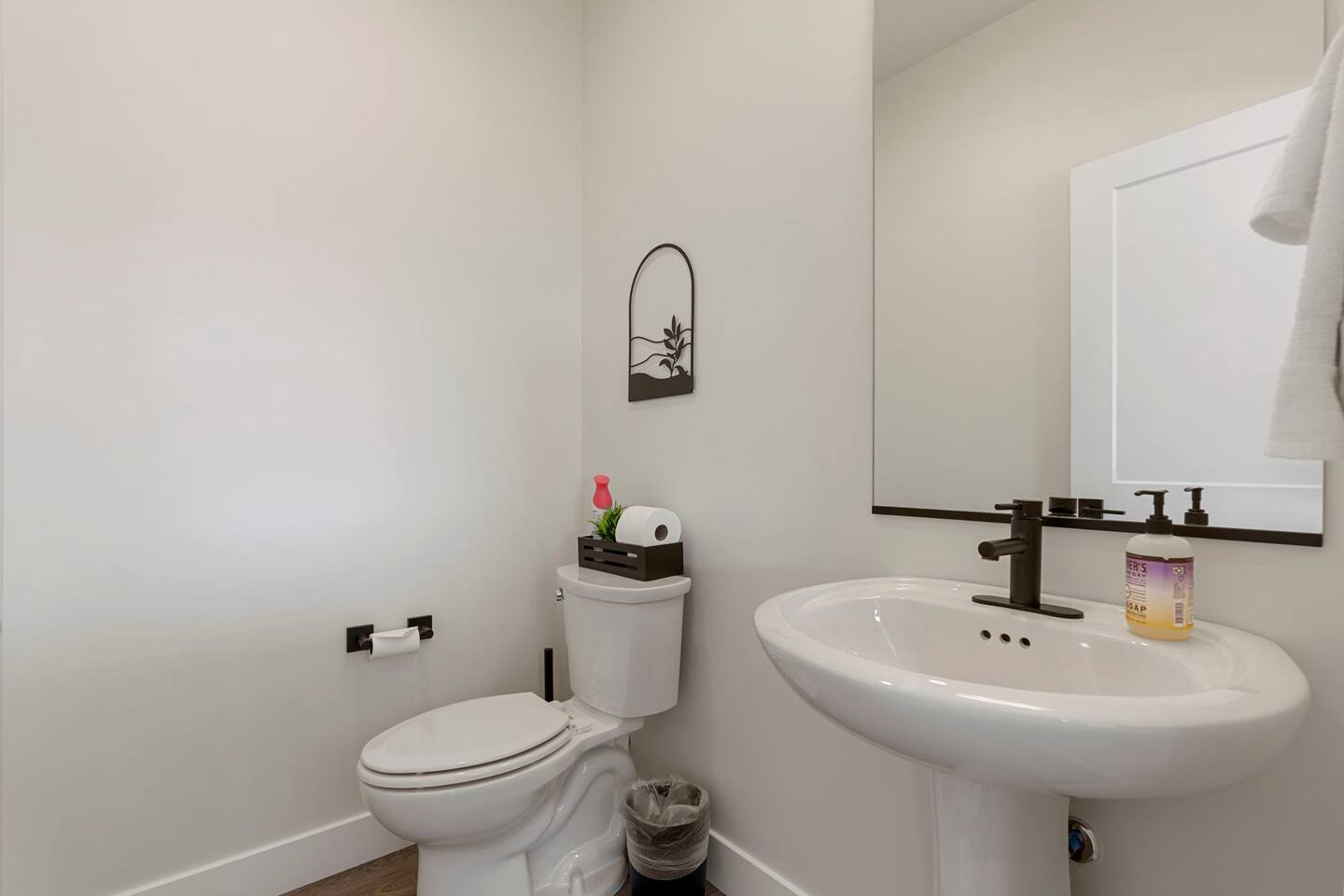 As you step into the first floor, you're greeted with stylish entry mats that set the tone for your stay. You'll find a fully stocked laundry room, making it easy to handle any washing needs during your visit. This floor also features a cozy bedroom with two queen beds, perfect for accommodating multiple guests comfortably. This bedroom has its own private bathroom for added convenience and privacy. The second floor boasts a spacious and combined kitchen, living, and dining area. The kitchen is fully equipped with all essentials, plus a blender, waffle iron, and crockpot. You'll also have your own personal Keurig coffee station. Enjoy your morning brew on the balcony overlooking the stunning Pine Valley Mountains. The living area features a huge modular couch that can be rearranged into one giant piece, like a bed. For your entertainment, there's a 120-inch projector screen that offers a home cinema experience, complete with extra cozy blankets and popcorn buckets. The dining area includes an 8-person counter-height table, perfect for meals and games. Off the living area, the balcony seats seven and features a fire table, making it the perfect spot to relax and unwind while enjoying the beautiful views. Additionally, the second floor includes a master bedroom with an ensuite bathroom, all designed in a modern boho theme, providing a luxurious and cozy atmosphere. On your way up to the third floor, you'll discover a cozy reading nook with deluxe chairs and abstract art above a personal work station, creating a perfect spot for relaxation or productivity. On the third floor, you'll find a game table that seats 8, perfect for game nights with friends and family. Play Texas Hold'em, Poker, Blackjack, Giant Jenga, or any other game you fancy. Plus, there's a large HD flat-screen TV and a mini bar stocked with everything you need for delicious cocktails and mocktails. It's a blast and promises a fun time for everyone! The rooftop patio is the perfect spot to unwind. It features a hot tub, bar height table overlooking the city, ideal for enjoying the view with friends or family and adirondack chairs are available for a relaxing and comfortable experience. Enjoy the serene atmosphere and take in the beautiful surroundings! The third master suite, conveniently located off the game area on the third floor, offers an incredible view from floor to ceiling windows. It features a luxurious modern theme, full-length mirror, and both the bed and dresser are enhanced with LED lighting to create a relaxing ambiance. The attached ensuite bathroom is well-appointed with double sinks, a walk-in closet, and a storage closet, ensuring ample space for all your needs. This stunning property is the perfect blend of luxury and comfort, offering spacious master suites, modern amenities, and breathtaking views. Whether you're relaxing in the game area, enjoying the deluxe bedrooms, or unwinding in the elegant ensuite bathrooms, every detail has been thoughtfully designed to provide an unforgettable stay. With a rooftop spa for ultimate relaxation and a home cinema for cozy movie nights, this getaway promises to be extraordinary. Book now and experience the ultimate retreat!