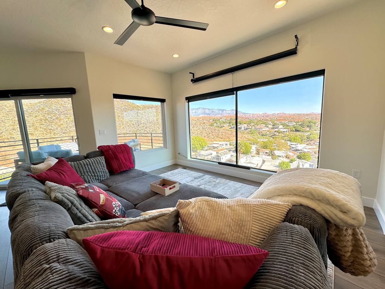 Welcome to your ultimate game night retreat! This luxurious and modern getaway offers breathtaking views that will leave you in awe. With a game night theme, you'll find a stylish mini bar, cozy theater set up, and Game table inside. Outside, enjoy the hot tub and fire table, perfect for relaxing under the stars and looking at the city lights. Whether you're here to unwind or have a blast with friends, this place combines luxury, modern amenities, and cozy comfort. Close to Zions NP and more!