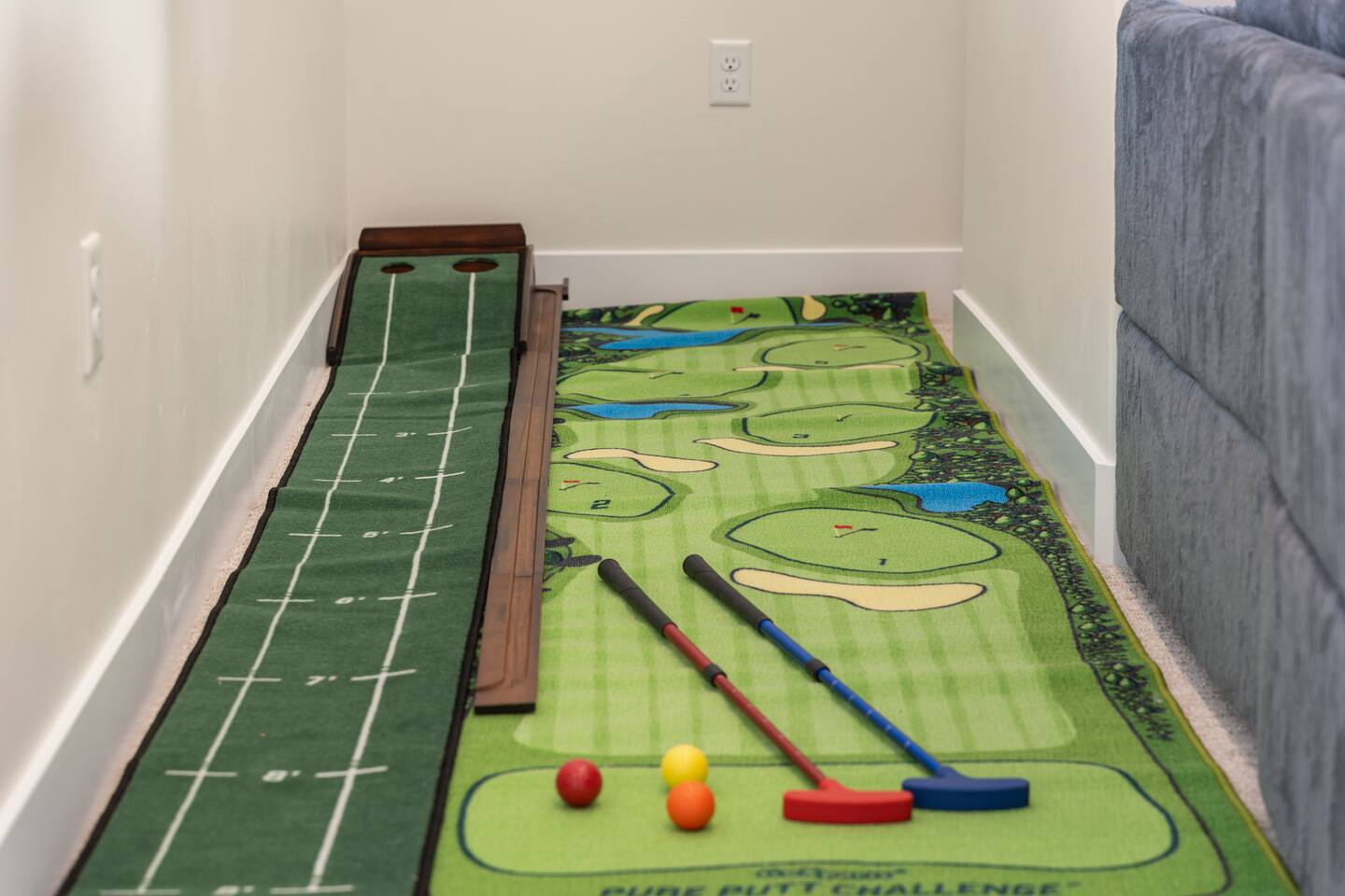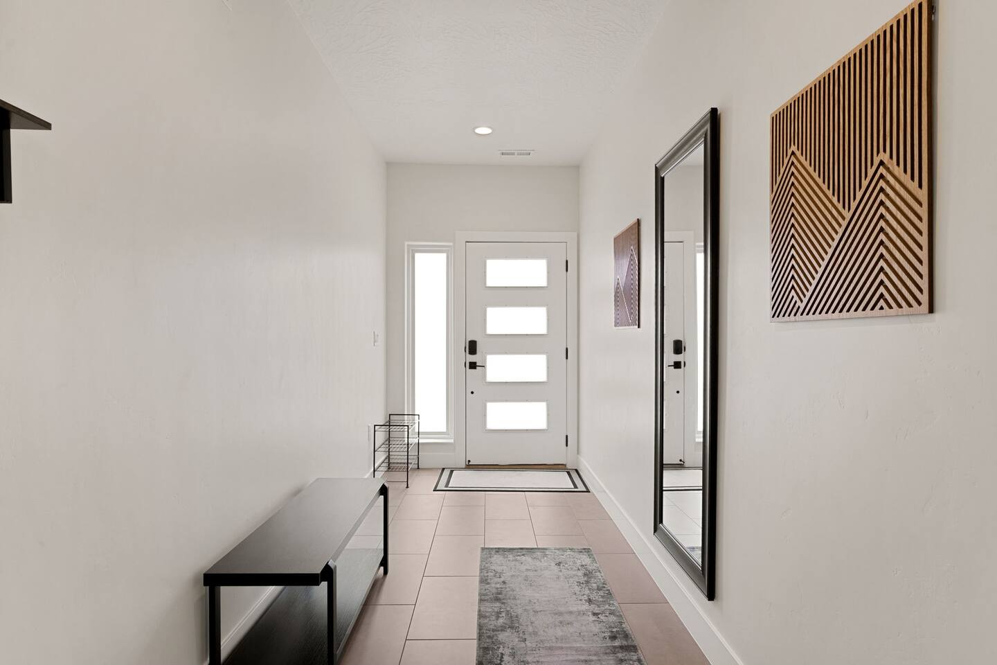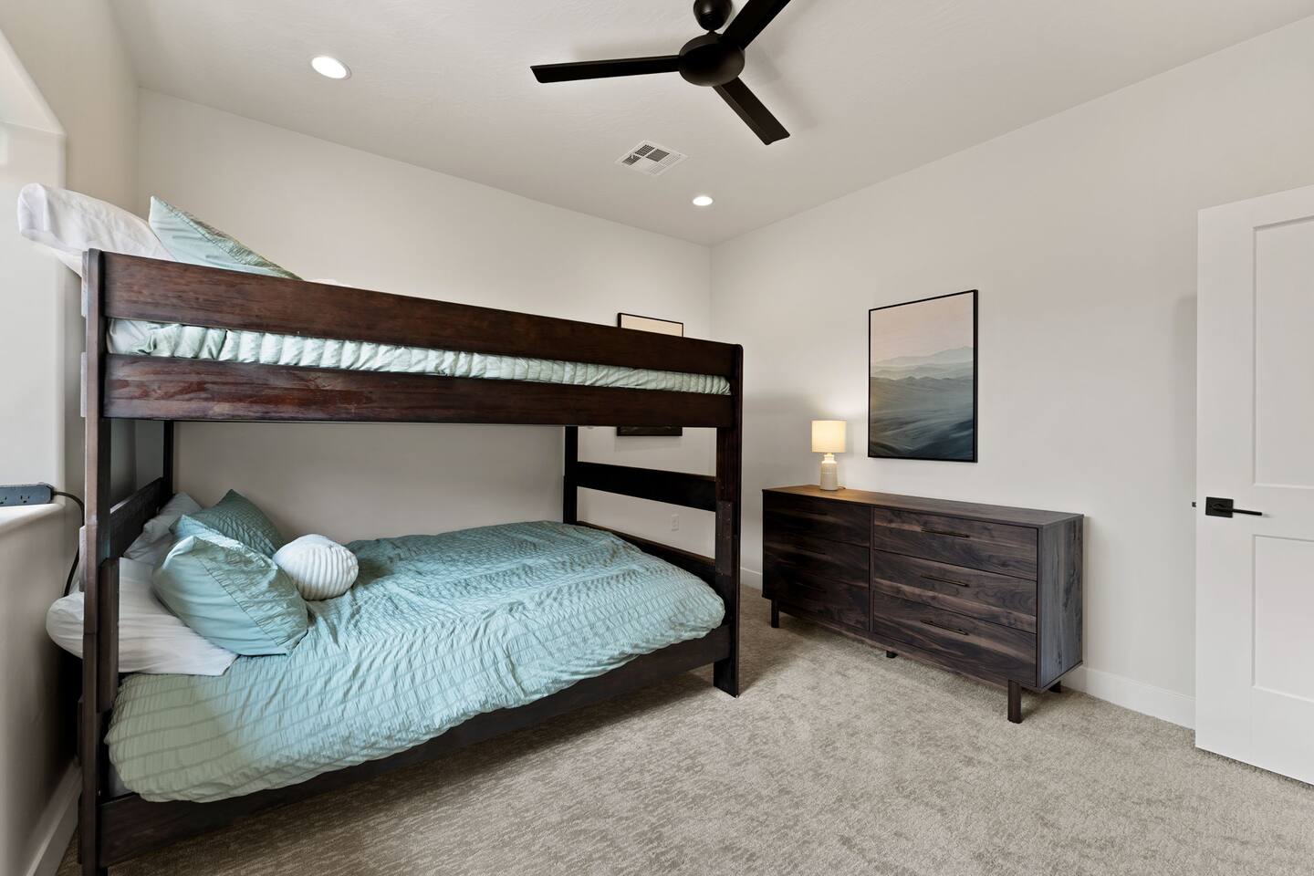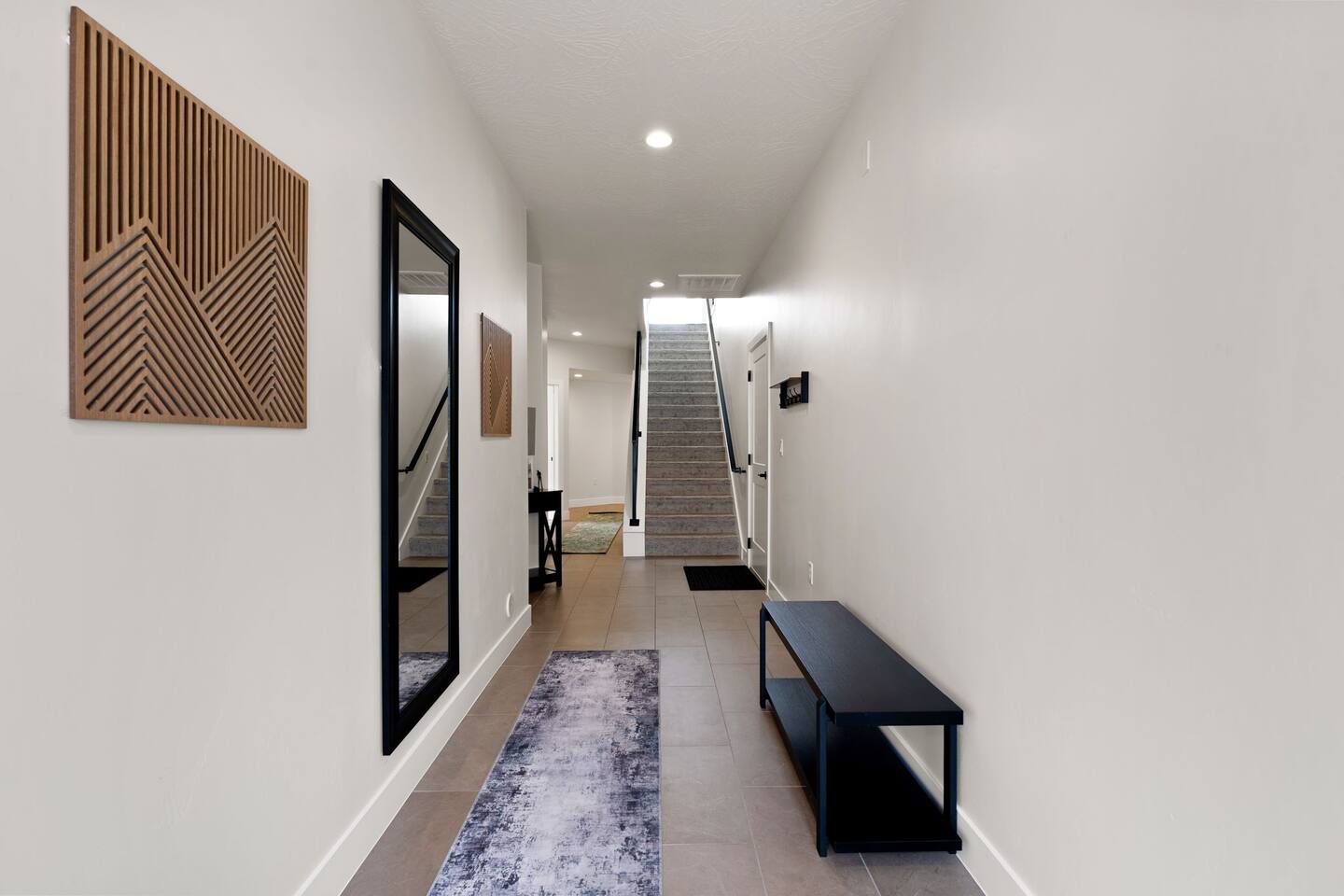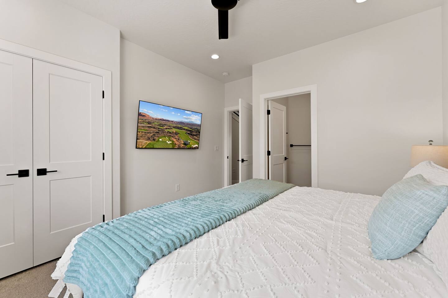 Message us for a special offer on your summer stay! As you step inside, the first floor welcomes you with a two-car deep garage equipped with an EV charger and a stylish entryway. Down the hall, you'll discover the first cozy king master bedroom with an ensuite bathroom, a plush mattress, and a flat-screen TV. Above the bed, there's a beautiful photo of Sand Hollow Golf Resort course. Continuing on, you'll find the hall bathroom, a fully stocked laundry room ready for use, and the second bedroom with queen over queen adult bunk beds, with the top bunk rated to 400 lbs and ample storage. Both bathrooms are equipped with all essential soaps and deluxe towels for your comfort. The second floor boasts a large, open-concept kitchen, dining, and game area with breathtaking 360-degree views of St. George, Zion National Park, and the mesas beyond. The kitchen is fully equipped with all the essentials, plus a blender, crockpot, and waffle iron. The island counter can accommodate 3 people, while the kitchen table comfortably seats 8. Adjacent to the kitchen is a large work station with fast WiFi. Step outside to the expansive balcony, where you'll find seating for 6 around a cozy fire table, perfect for enjoying evening sunsets. Enjoy the pool room, perfect for great billiard fun, complete with a 65-inch TV for watching the game. Off this room is a convenient half bath. The second king master bedroom features an ensuite bathroom, a flat-screen TV, and a plush mattress, adorned with art depicting the Desert Color Resort. The third floor is dedicated to fun and relaxation. It features a game cabinet filled with a variety of entertainment options, a versatile 10-in-1 foosball game table, and a spacious modular sectional that seats 10. Enjoy movie nights on the massive 86-inch TV, practice your putting skills on the indoor green, or challenge friends to a mini putt-putt golf game. The space is adorned with art from the Black Desert Golf Resort and vintage golf patent designs. Step out onto the rooftop patio to unwind in the 6-person hot tub, offering breathtaking views of the city skyline and twinkling city lights. This stunning property offers the perfect blend of luxury and entertainment, with amenities designed for both relaxation and fun. Whether you're enjoying the breathtaking views from the rooftop hot tub, hosting a movie night on the third floor, playing a game of pool, or cooking a delicious meal in the fully equipped kitchen, there's something for everyone. Don't miss out on this incredible getaway—book your stay today and experience all that this unique home has to offer!